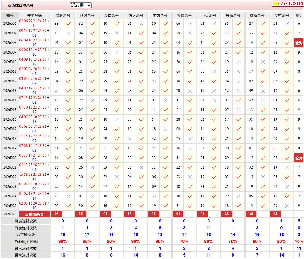 > 026期彩票专家双色球杀红蓝推荐汇总