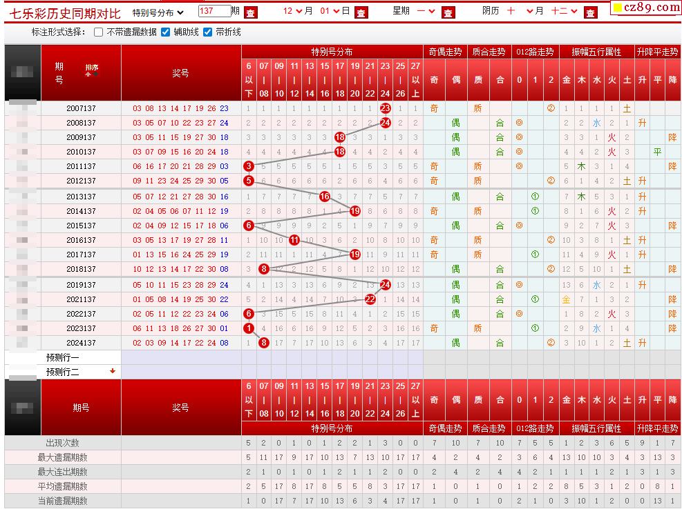 > 137期七乐彩历史同期对比图